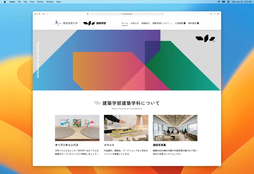 ロゴを中心にWebや各アイテムのデザインを想定した、建築学部全体のブランディング展開を担当させていただきました。