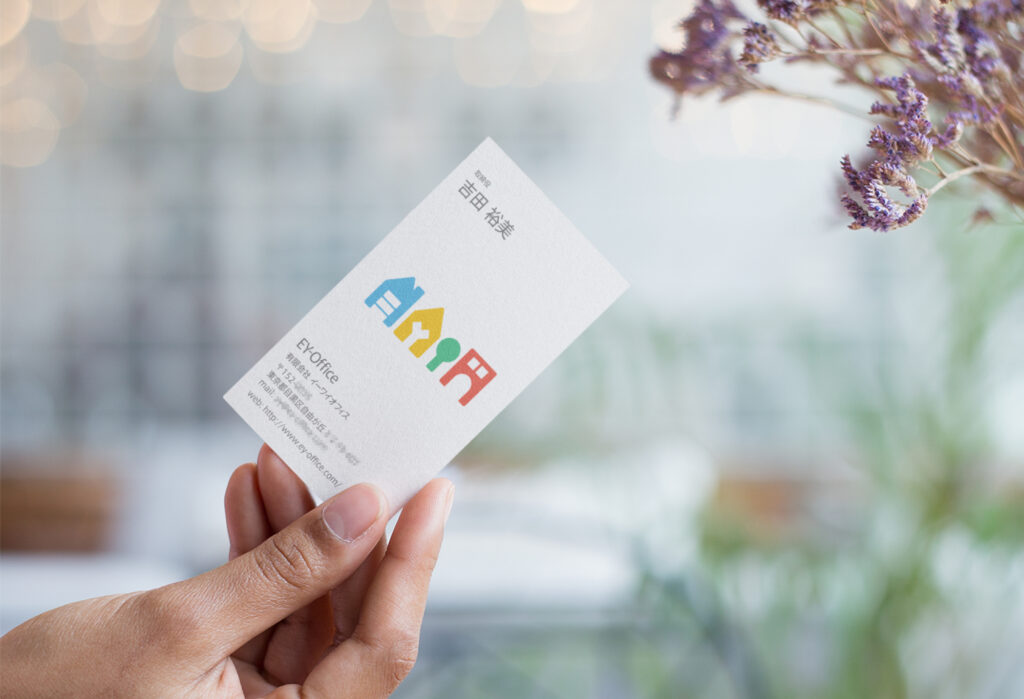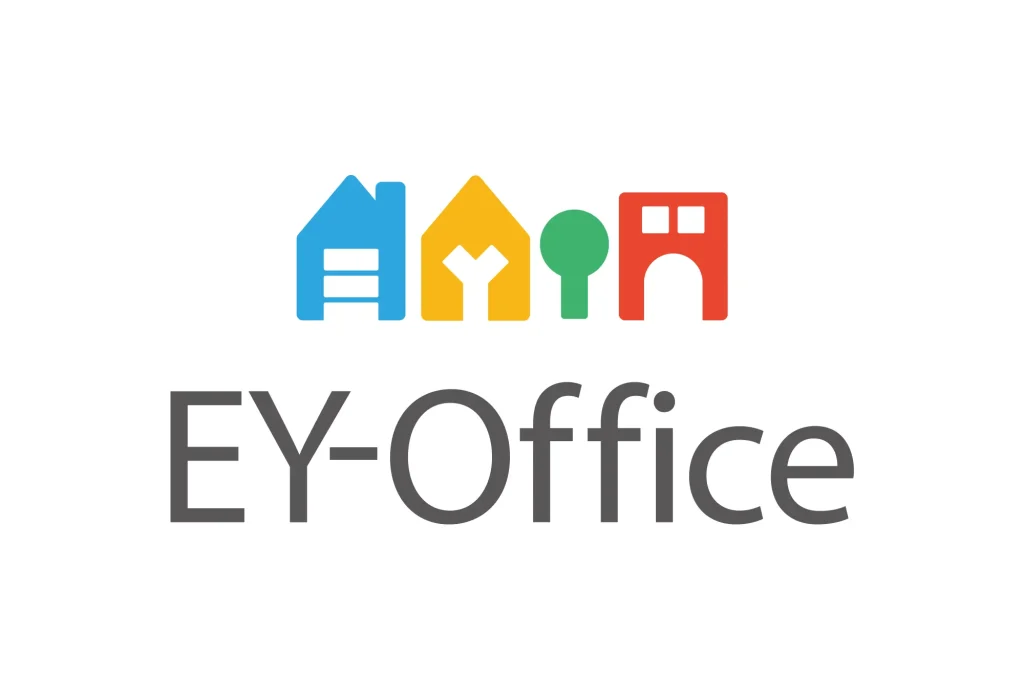 事業内容をロゴに含め、アルファベット「EY-O」をモチーフに、様々な街並みやオフィスに浸透し教育および開発を行う様子を現しています。
