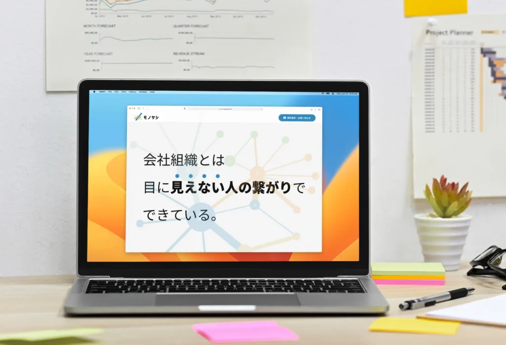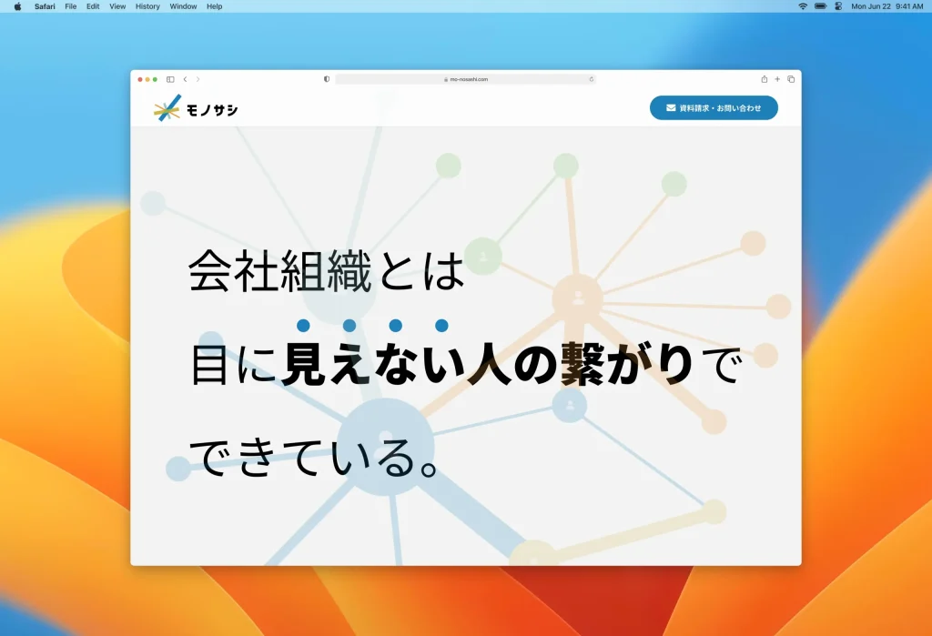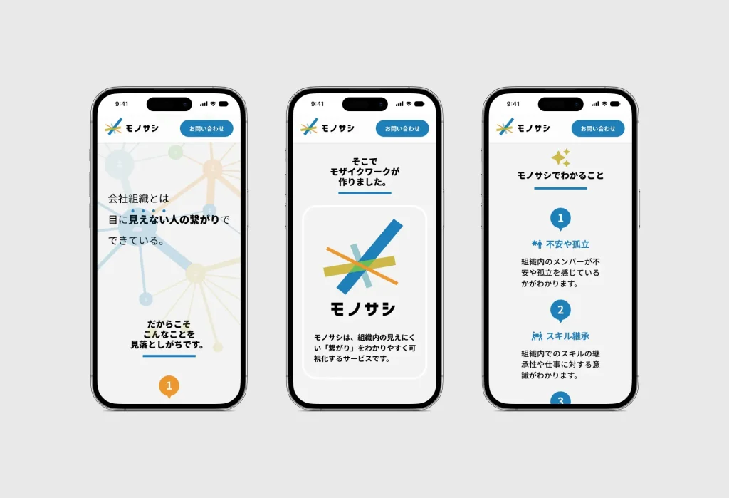 株式会社モザイクワーク様が運営を行う、社内の人間関係などをネットワーク図で可視化するサービス「モノサシ」のロゴデザインです。