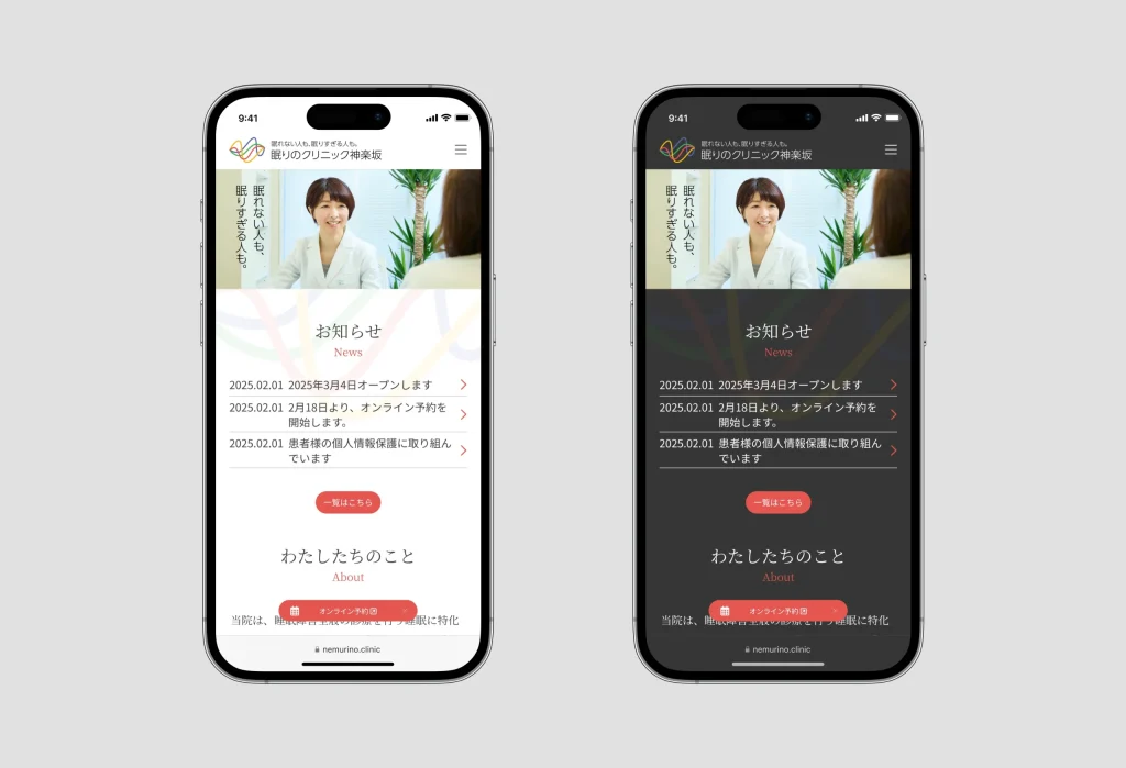さらに、このロゴには、睡眠が単なる休息ではなく、身体と精神の健康に不可欠な活動的プロセスであるという理念が込められています。ノンレム睡眠では脳の休息や身体の修復が行われ、レム睡眠では記憶や感情の整理が進むなど、科学的根拠に基づいた治療への信頼感を与えるデザインです。