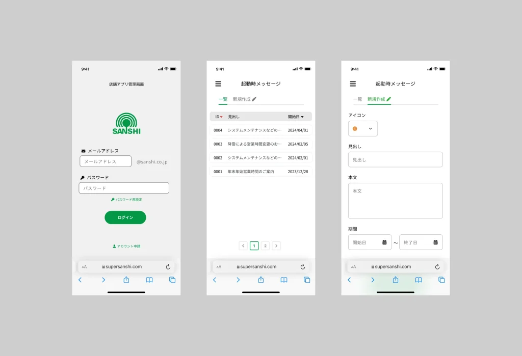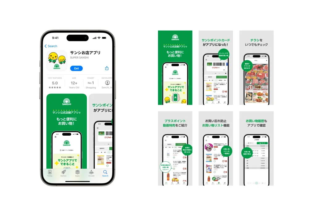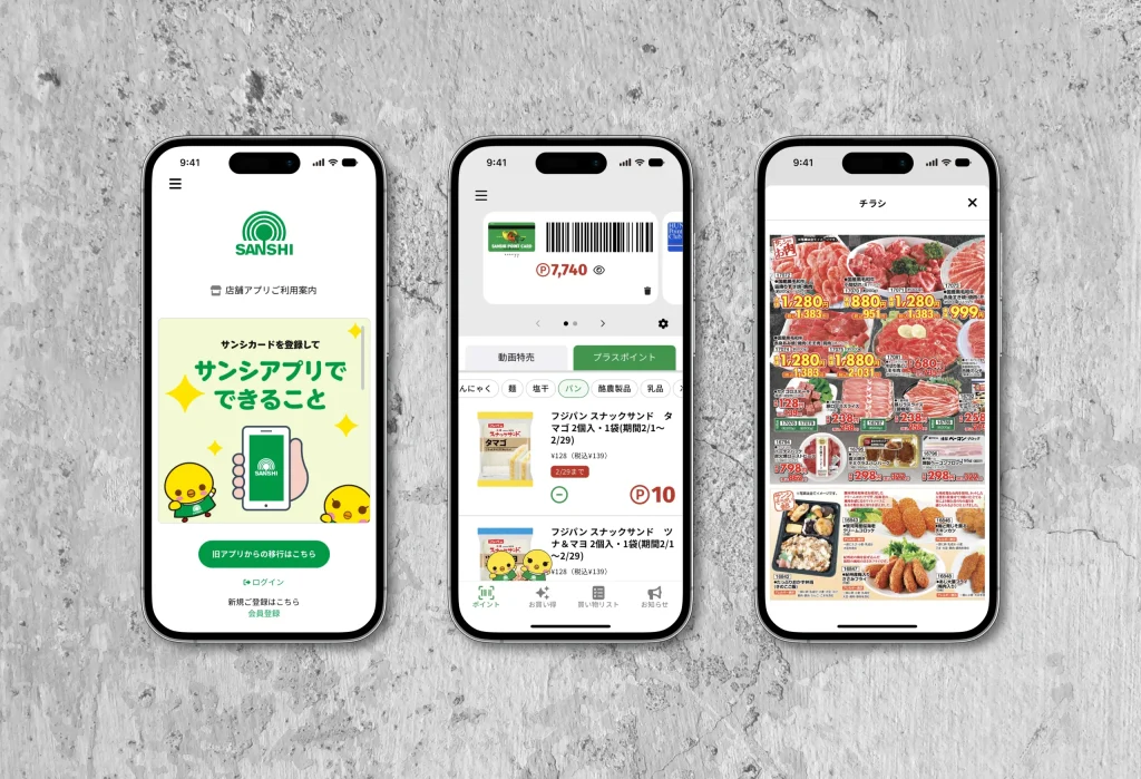 三重県内に多数の店舗を展開するスーパーサンシの店舗アプリのデザインを担当しました。